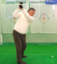 プロ クラブの動きを見ててください。こうやって左肩をより回していくと・・・。 どうですかクラブの動きは?