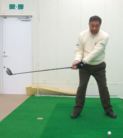 プロ そうです。コックをほどくのを遅らせるレートヒットは、インパクト直前にコックをほどいてヘッドを走らせるわけですが、筋肉の反応が鈍くなってきている団塊の世代のゴルファーには向きません。