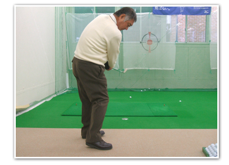 (インタビュアー) 私は、グリップを目標方向に出すハンドファーストで構えてましたネ。でも、そうしていたから、ボールが高く上がらず、ザックリのミスが多かったということがわかりました。