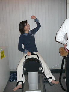 これで痩せるなんて無理でしょうと思っていたところ、上体を使ったエクササイズが用意されていた。テレビ体操のようにビデオを見ながらそれに従い腕を振ったり上体を捻ったりなどである。